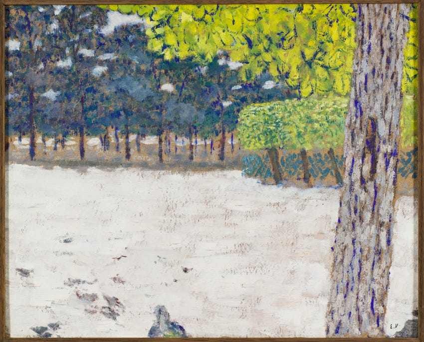 El verano es tiempo de paisajes. Quienes disfrutan de las vacaciones lejos de casa, el observar es un gesto cotidiano, en busca de horizontes que nos devuelvan algo parecido al asombro. Pensando en viajes y paisajes recordamos cuando hace casi un año fuimos juntas al Festival de Cine de San Sebastián a ver Spectateurs! de Arnaud Desplechin. En esta película, que es un recorrido admirado (y bastante androcéntrico) por la historia del cine, se menciona la pintura Le jardin des Tuileries de Vuillard, que hoy se encuentra en el Museo de Orsay. En este cuadro, sobre el manto de nieve que aparece en primer plano, se intuye la sombra de una persona: una observadora curiosa, que el pintor incluye en el paisaje haciéndola formar parte de él.