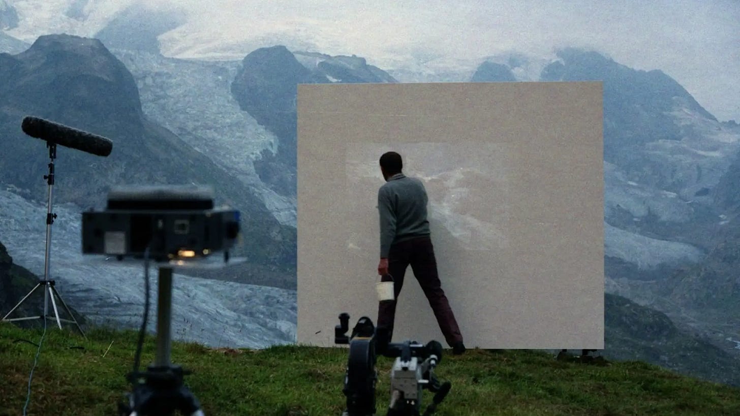 En la performance Proyección de 1990, el artista Rémy Zaugg retoca con pintura blanca un paisaje alpino proyectado sobre una pantalla, jugando con la idea de éste como ventana: cuando la proyección termine, sólo quedará blanco sobre blanco.